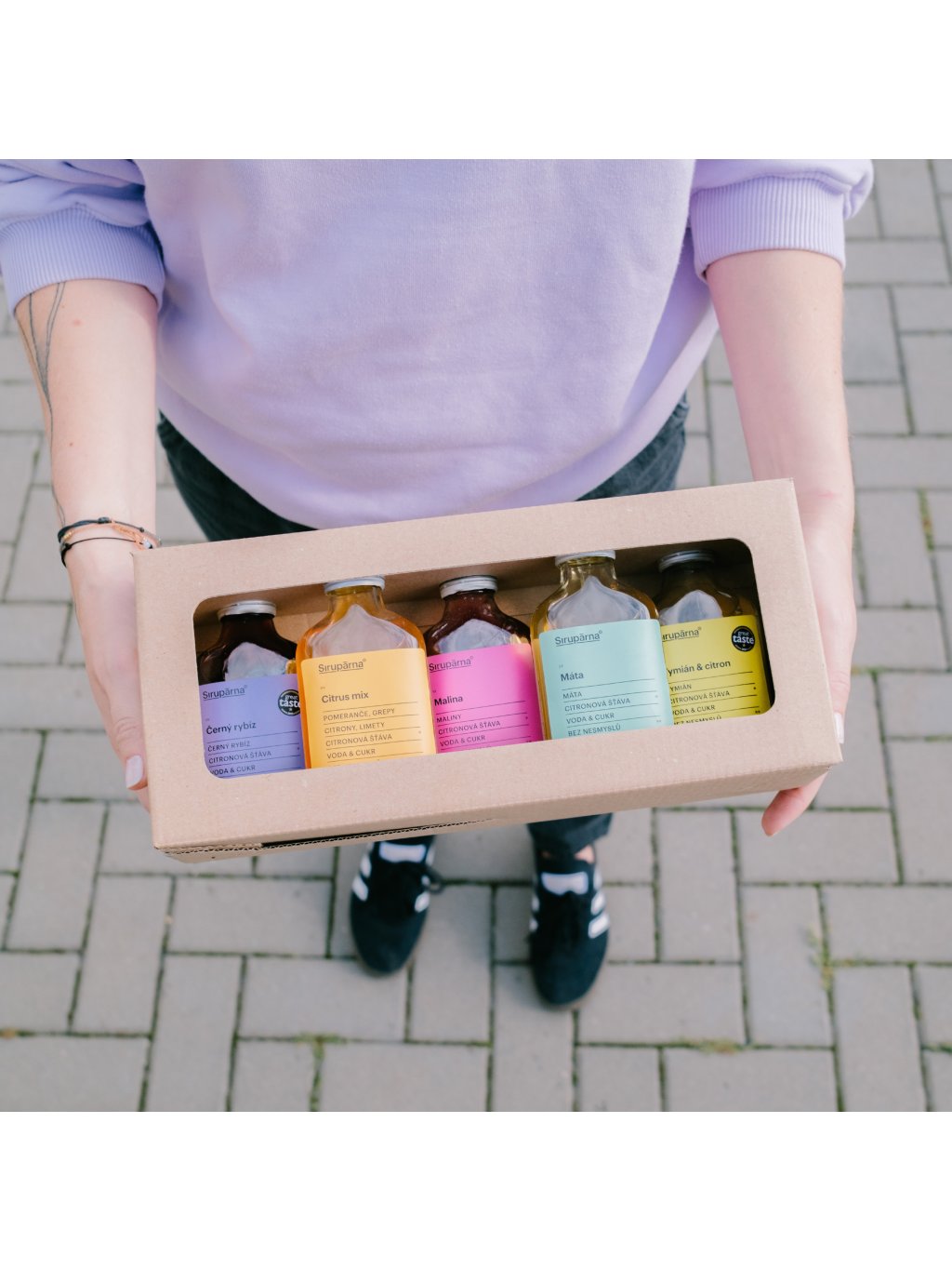 Pět malých sirupů v letním mixu chutí – od svěží máty a citronu s tymiánem až po šťavnatou malinu, rybíz nebo citrusový mix. Skvělé na domácí limonády, koktejly i jako malý dárek. Perfektní parťáci pro osvěžení během horkých dnů.