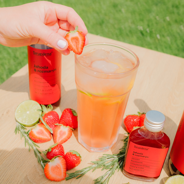 Chuť, která si na nic nehraje. Jahoda & rozmarýn není obyčejný sirup. Je výsledkem ruční práce, citlivého macerování a šetrného zpracování bez umělé chemie. Zkuste ho s perlivou vodou, do domácí limonády, do drinku nebo i na palačinky.