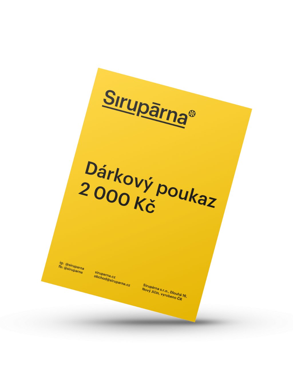 Hledáte originální dárek pro vaše blízké, přátele nebo kolegy? Překvapte je dárkovým poukazem na 2 000 Kč do e-shopu Sirupárna! S naším dárkovým poukazem si obdarovaný může vybrat z široké nabídky našich lahodných sirupů, pečených čajů, dárkových balíčků a dalších produktů.