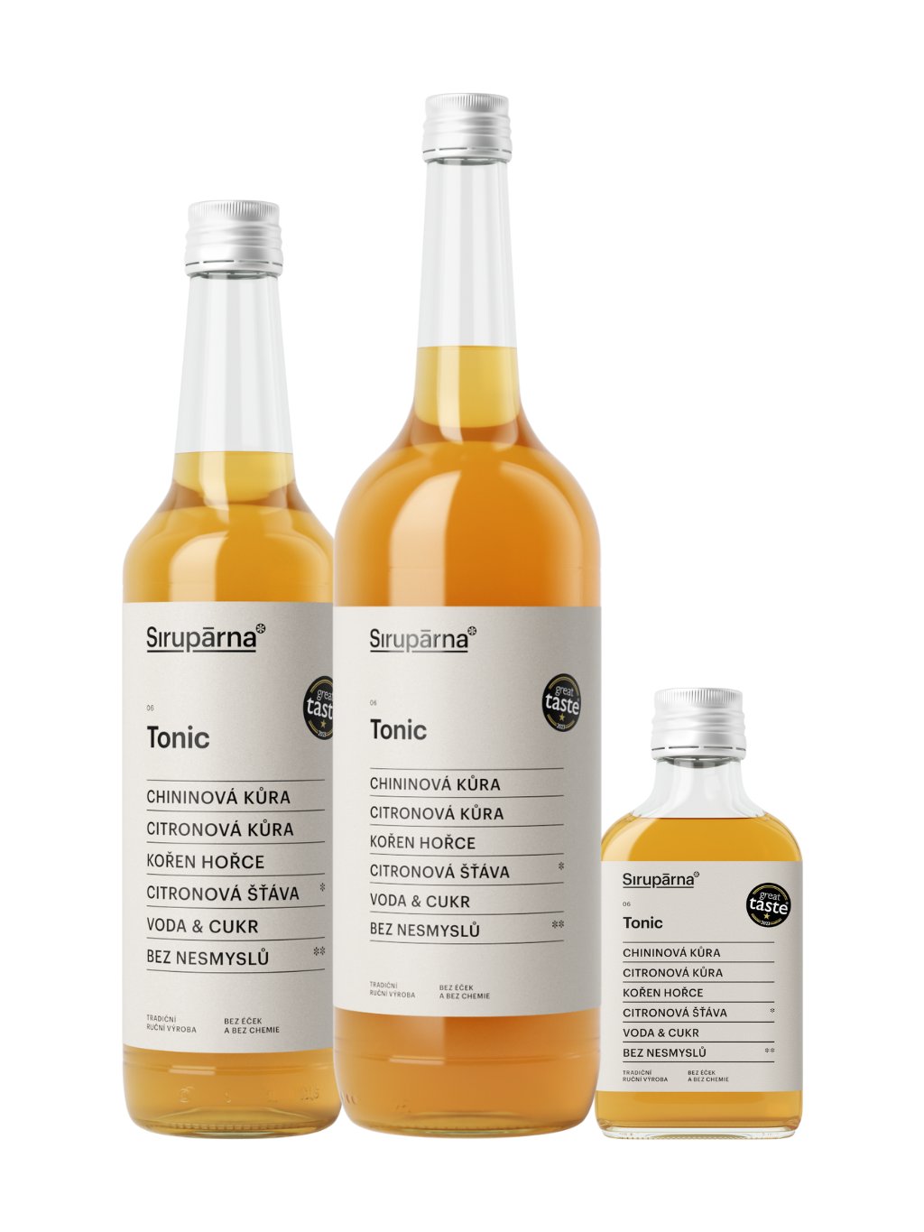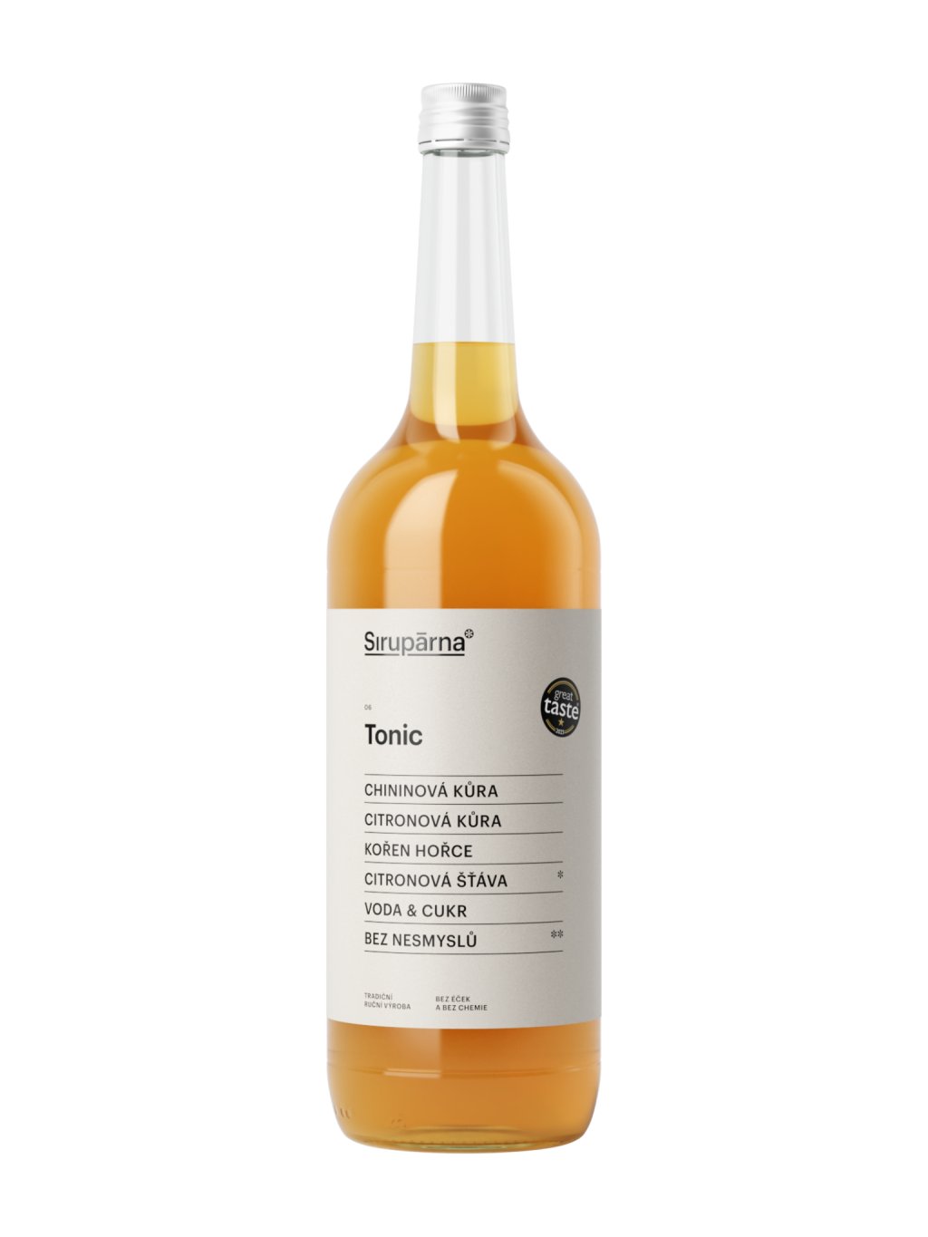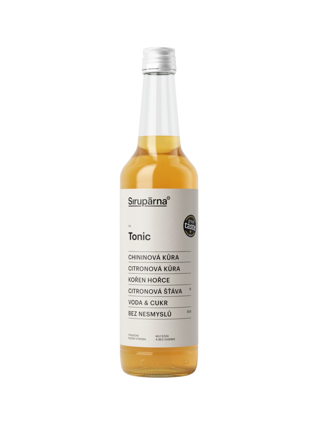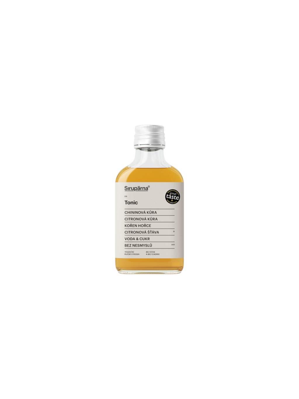 Sirup Tonic je inspirovaný klasickým tonikem, ale přináší jeho chuť v přirozené, řemeslné podobě. Základem je výluh z chininové kůry a kořene hořce, který dodává typickou hořkost – doplněný citronovou šťávou a kůrou pro svěžest a lehkou kyselost. Díky bylinkám a citrusům je nejen výrazný, ale i funkční – podporuje trávení a působí osvěžujícím dojmem.