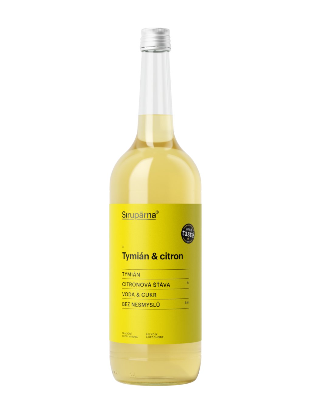 Tymián je silná bylinka s dlouhou tradicí – používá se při nachlazení, kašli a podporuje trávení i celkovou obranyschopnost. V kombinaci s citronem vzniká sirup, který působí svěže, ale zároveň má bylinkovou hloubku a zemitost. Citron dodává sirupu kyselost a lehkost, tymián naopak aroma a léčivý účinek.