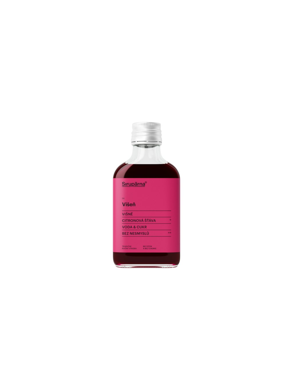 Višňový sirup je postavený na šťavnatých, vyzrálých višních s charakteristickou chutí a sytou barvou. Višně jsou známé svým vysokým obsahem přírodních antioxidantů, vitamínů skupiny B, minerálů a antokyanů, které přispívají k normální funkci cév, srdce i regeneraci po fyzické zátěži.